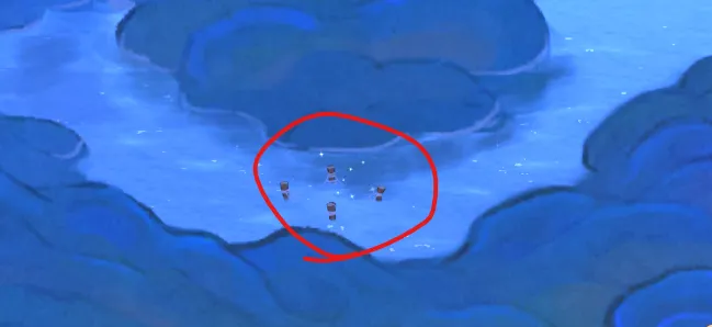 - 打撈點刷新位置不唯一,會出現於湖面各位置,未清理雲霧的湖面也會出