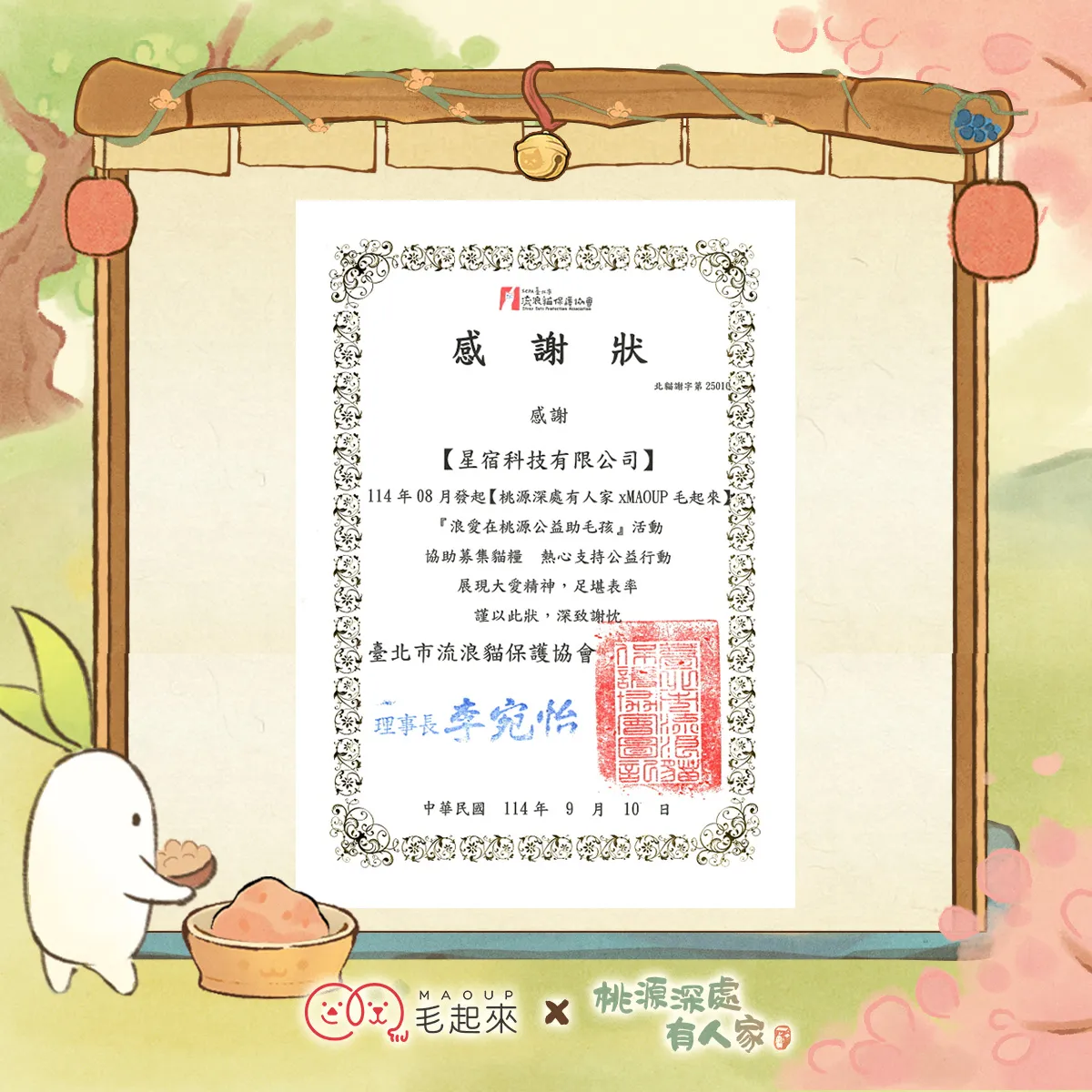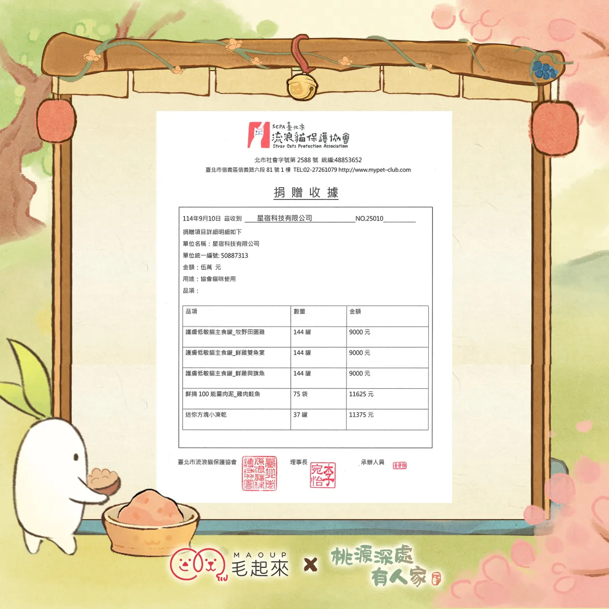 首頁 蘿事錦集 2025貓咪公益活動全紀錄 2025年:《桃源》x《毛起來 MAOUP》貓咪公益活動全紀錄 Facebook 分享 LINE 分享 蘿蘿山公益捐贈完美達成! 感謝山民們的集氣一起讓浪愛毛起來~ 《桃源深處有人家》X《 毛起來 MAOUP 》在8/13起共同發起了集氣物資, 捐贈等值 $𝟭𝟬𝟬,𝟬𝟬𝟬 的貓貓商品至 臺北市流浪貓保護協會-民間動保團體 非常感謝本次公益活動 在山民們的共同努力下, 活動完美達成且超額完成原定目標啦! 由山民們一起助力,給小浪浪們創造溫暖的桃源~ 看到可愛的貓貓們吃的開心,蘿蘿們也都很欣慰呢~! 領養代替購買~浪愛在桃源!