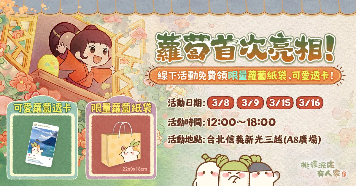 蘿蘿除了準備許多超萌蘿蔔小物外,也備好各式蘿蔔周邊與桃源虛寶要送給大家。