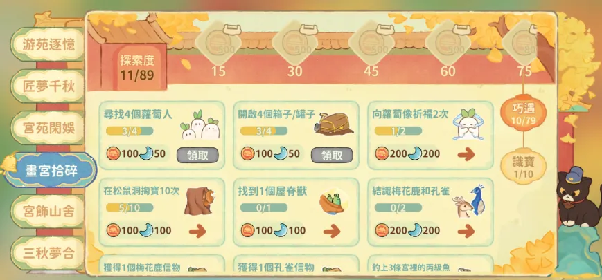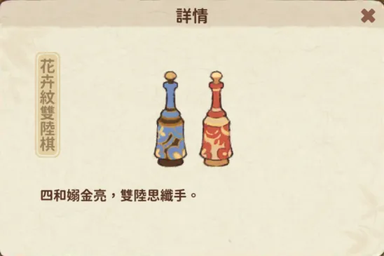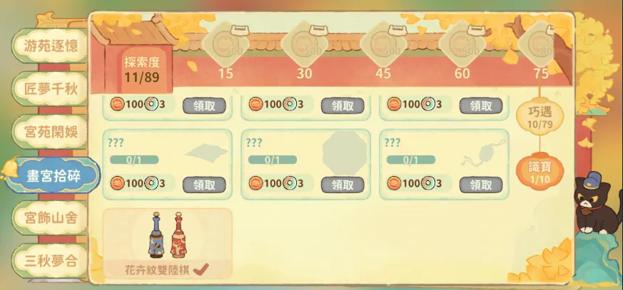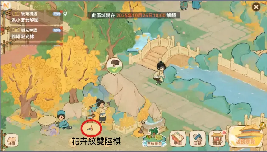 首頁 蘿事錦集 故宮蘿事總覽 故夢宮詞-初入宮門 故夢宮詞 第一回:初入宮門 Facebook 分享 LINE 分享 本篇將為大家帶來《桃源深處有人家》故宮活動第一回「初入宮門」的完整攻略,包含所有隱藏物品、挑戰修復與劇情碎片。 隱藏物品 (地點提示) 蟠桃包子 花卉紋雙陸棋 松鼠洞 (地點提示) 最後別忘了餘興挑戰的修復 第一回結束時,隱藏要素的總覽圖 蘿事錦集