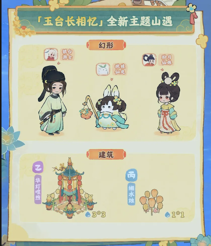 此外,還有乙等建築「華燈喧煦」、丙等建築「緗水燭」和陶陶全新手持物「盈月繡球」。